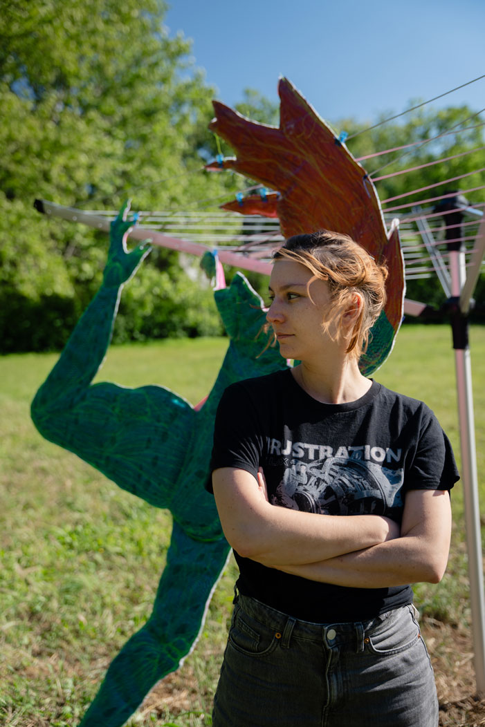 Hélène Hulak développe une pratique d’installation mêlant peinture, sculpture, textile. Son travail renverse les imaginaires féminins capitalistes par une esthétique dévorante, saturée, grotesque et incisive : couleurs vives, silhouettes monstrueuses, corps démesurés. Elle détourne des techniques artisanales, notamment textiles (quilt, tricot), pour en altérer l’échelle, la vitesse ou la fonction, et puise dans la culture populaire des images susceptibles de muer et de se transformer. En jouant de leurs codes jusqu’à l’excès, elle interroge nos rapports au genre et à l’environnement. Son travail a été montré au 68e Salon de Montrouge, au macLYON, aux Magasins Généraux (Pantin), à la SIM Gallery (Reykjavik), à KOMMET (Lyon), ainsi qu’à La Villette pour 100% L’Expo (2023). Elle a participé à plusieurs festivals internationaux, dont Lokart Festival (Hongrie) et Prague Art Week (Tchéquie).